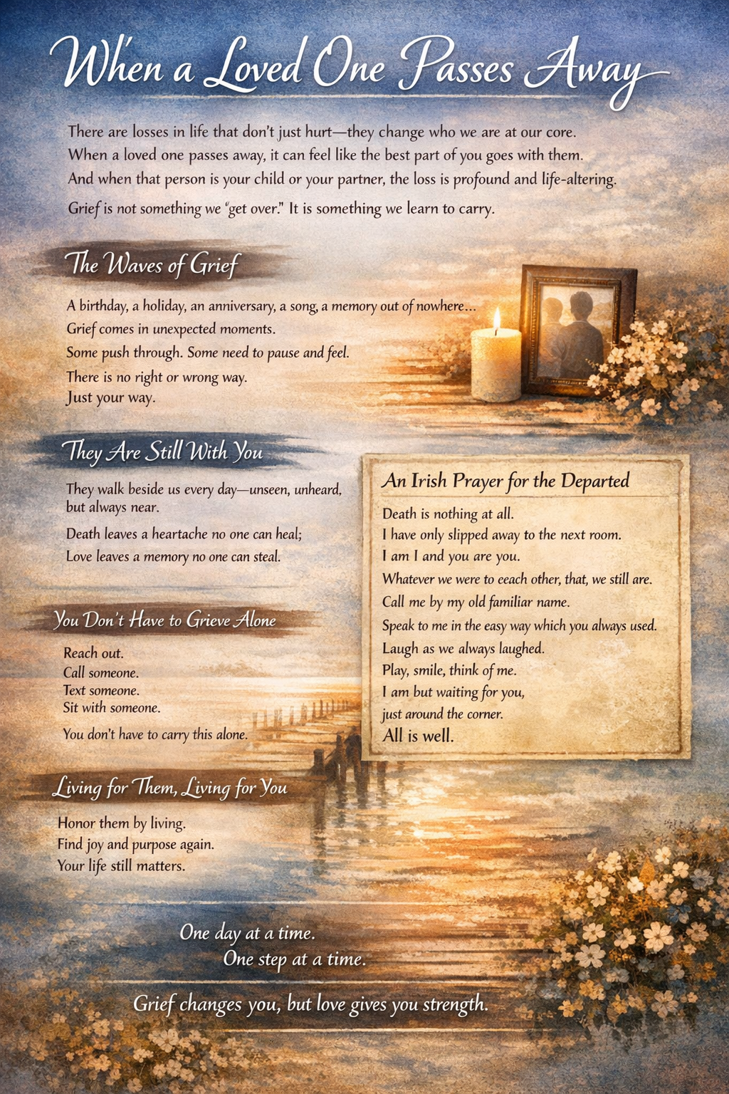 There are losses in life that don’t just hurt—they change who we are at our core. When a loved one passes away, it can feel like the best part of you goes with them. And when that person is your child or your partner, the loss reaches into places within you that you didn’t even know existed. It doesn’t just break your heart—it reshapes your entire world.