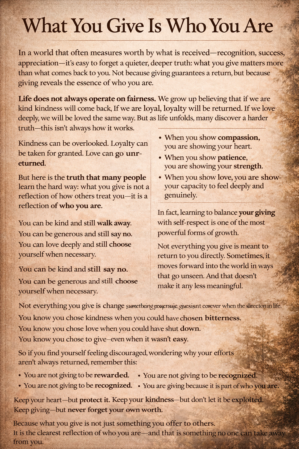 Keep giving—but never forget your own worth.